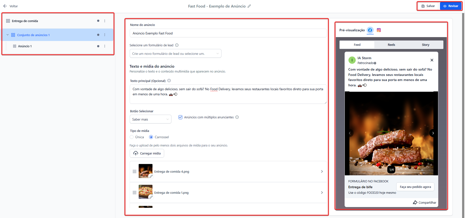Após o preenchimento das informações e devidas configurações, o CRM disponibiliza a pré-visualização do anúncio e configurações finais da publicação, clique em "Revisar" ao finalizar as configurações