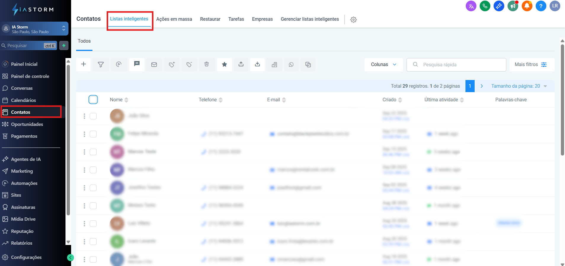 1. Navegue até a página de Contatos → Listas Inteligentes