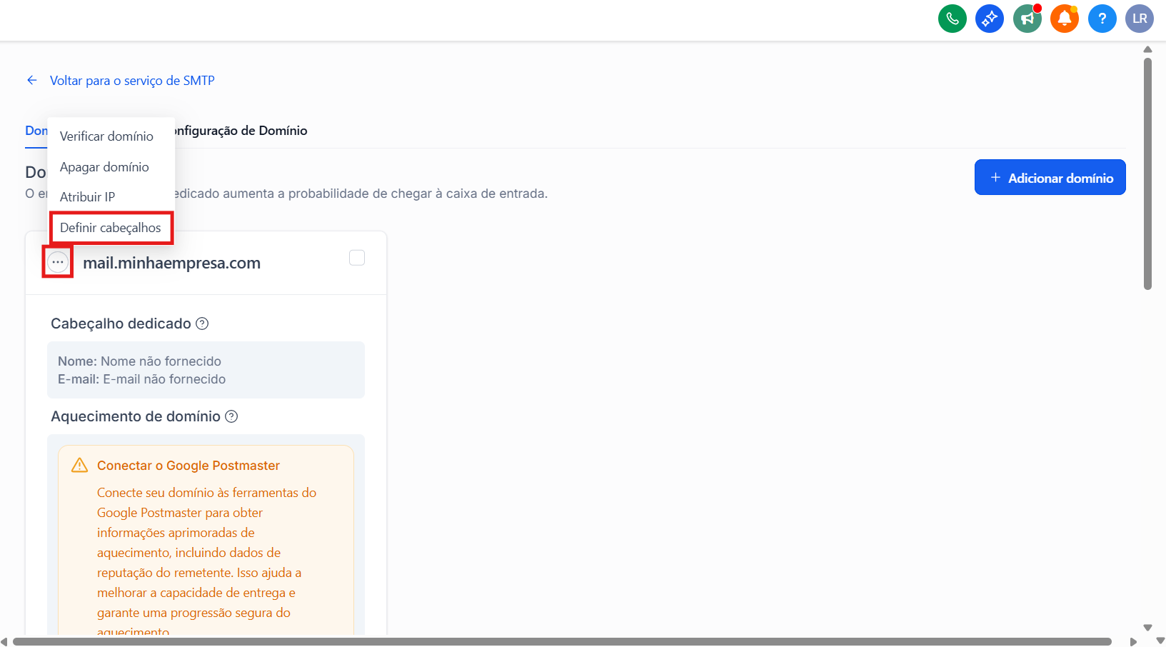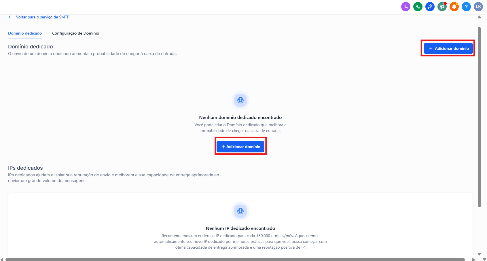 4. Clique em "Adicionar domínio"