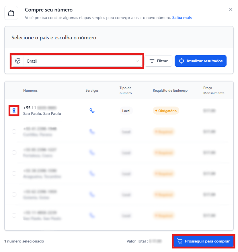 4. Selecione o número de telefone desejado